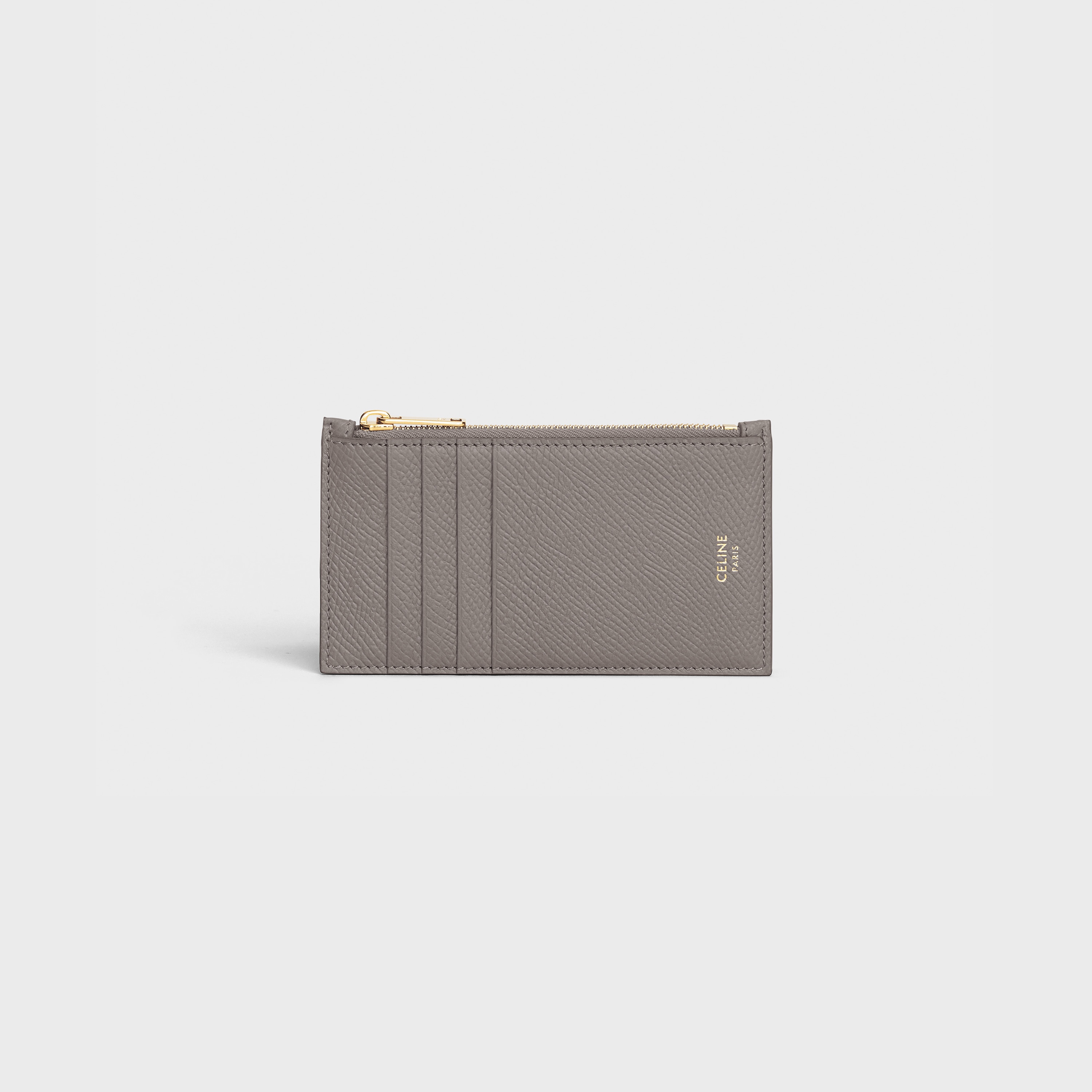 Zipped Compact Card Holder In Grained Calfskin Pebble Celine